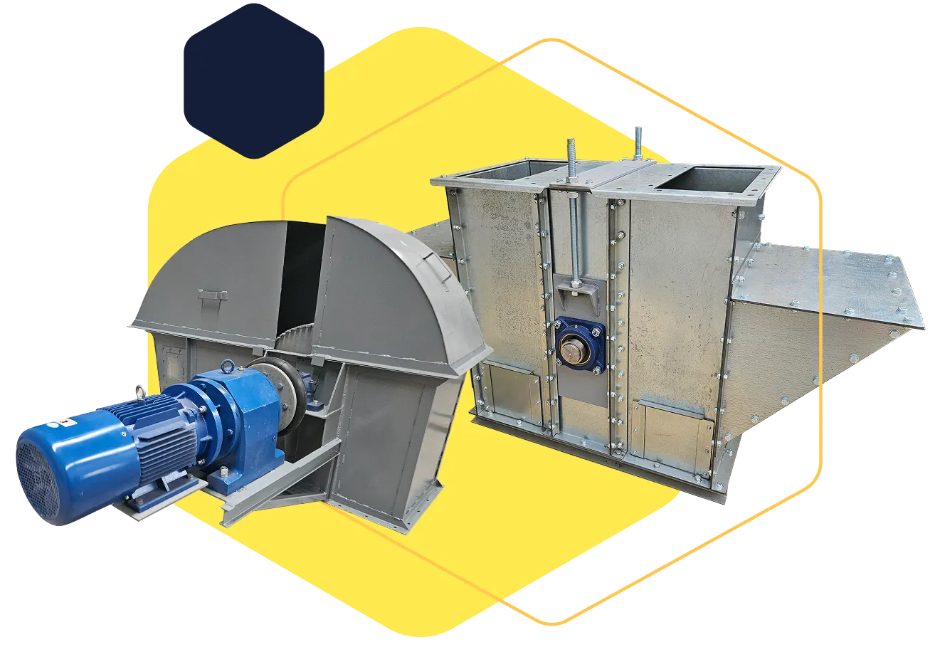Kofičasti transporteri namenjeni su mehanizovanom, vertikalnom transportu zrnastog materijala (žitarice). Najčešća upotreba kofičastih transportera je za vertikalni transport zrna u silosima. Ovo je najkvalitetniji vid transporta, postiže se ušteda u vremenu podizanja materijala, ušteda u prostoru i utrošku potrebne energije. Materijal koji se transportuje stoji u kofici koja se kreće. Kapacitet elevatora koje izrađujemo kreće se od 10t/h do 240t/h suvog zrna. Delovi elevatora su donja glava (u koju ulazi materijal za transport), gornja glava elevatora (na koju je montiran pogon i iz koje izlazi transportovani materijal), telo elevatora (cevi koje određuju visinu elevatora) i gumena traka sa koficama. Zrno se u elevator uvodi kroz usip na donjoj glavi koja može da bude postvljena sa prednje ili zadnje strane elevatora. Kofice zahvataju zrno i nose ga naviše. Zbog centrifugalne sile zrno se ubacuje u razdelnik (ili preklopku) na gornjoj glavi elevatora koji određuje dalji put zrna.